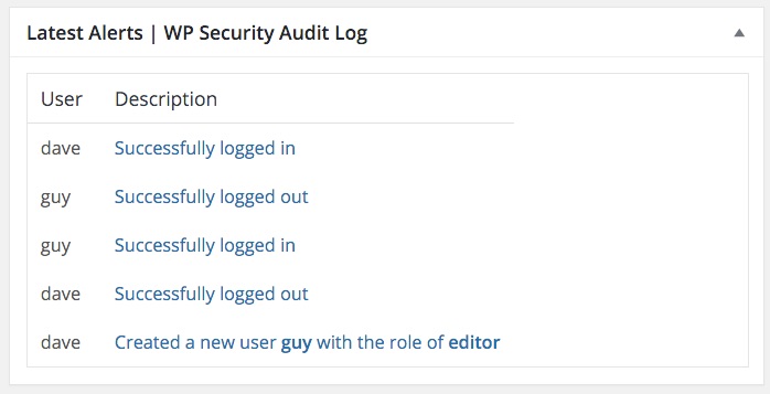 • This would come in handy if you wanted to keep tabs on a client website, or if you run a multi-author blog. You can see who is creating & updating which pages/posts, if they’ve updated their password, etc.